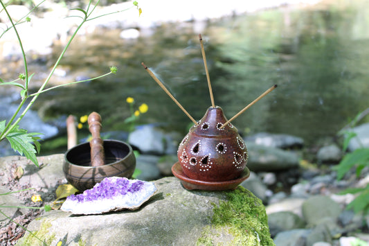 Bruciatore Stupa puntinato in terracotta